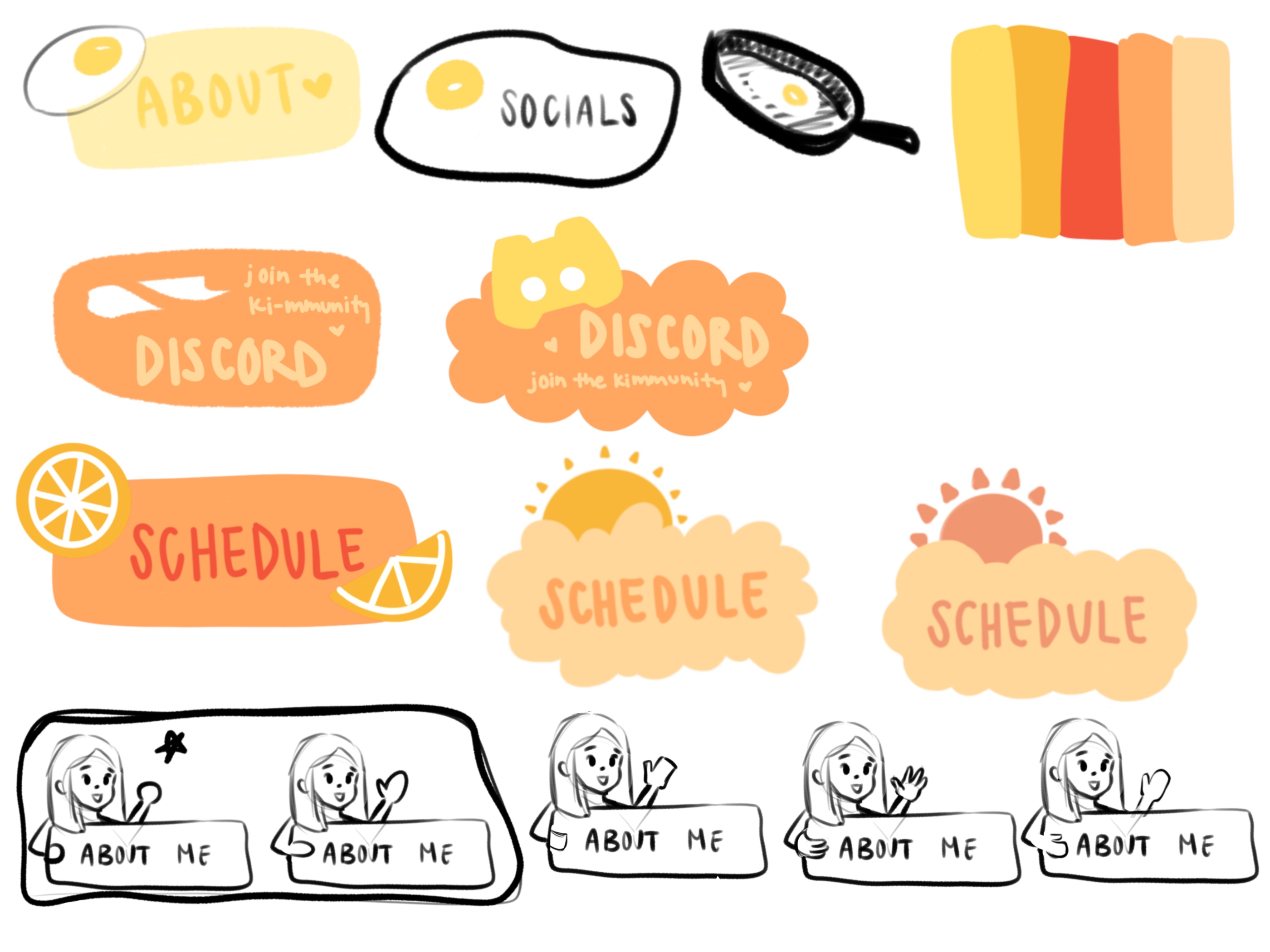For this project I worked with my client to develop a clear and cohesive brand for all of their Twitch assets that reflected the personality of their channel. I used an iterative and collaborative design process, offering several ideas, sketches, and desgins to the client and worked together to figure out the best desgin and branding fits for their channel. They expressed wanting to use citrus like colors and described their channel as friendly and wholesome. From this I developed a color pallete that would be readable and look good for both light and dark modes. Based on the personality of the channel and following the desired color pallete, I also developed a citrus sunset theme that was kept consistent through all of the assets created in order to maintain a cohesive brand and theme. For this project I designed and created 6 emotes, 9 panels, and a banner.
